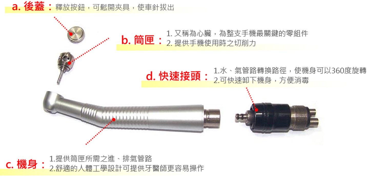 🔹高速手機,也稱為空氣渦輪牙科手機,是利用高速氣壓來驅動牙科手機。